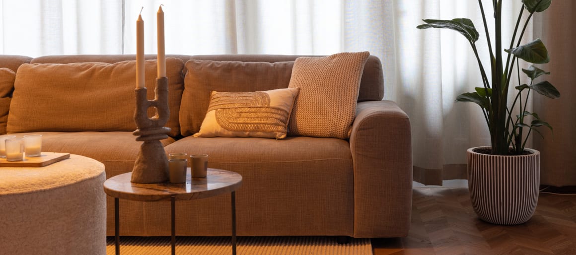 In hun vernieuwde zithoek, hebben Ron en Jeanette iets bijzonders: styliste Laura heeft voor hen de gloednieuwe modulaire bank Kai uitgekozen, die vanaf nu verkrijgbaar is. Deze is ontworpen als ultieme comfortbank, met een heerlijk zachte zit en een natuurlijke uitstraling, waardoor dit exclusieve voorproefje wederom perfect past bij de nieuwe look van het appartement. Met talloze stoffen en kleuren, een aanpasbare opstelling, zitcomfort op maat en twee zithoogtes kun je jouw ideale Kai-bank precies afstemmen op je eigen woonwensen.