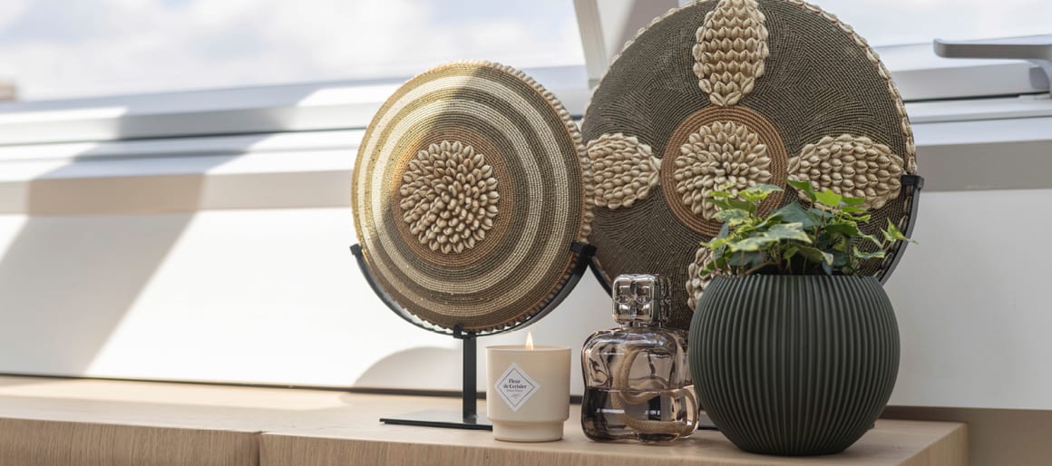 Bij het Lino-kastje en de houten vloer koos het team voor een het Timeless Classic karpet van COCOmaison. Tijdloos en en klassiek, gemaakt van wol en laagpolig, maar met een hoogpolige rand. De prachtige bruine tint van het karpet is makkelijk te combineren met verschillende kleuren meubels.