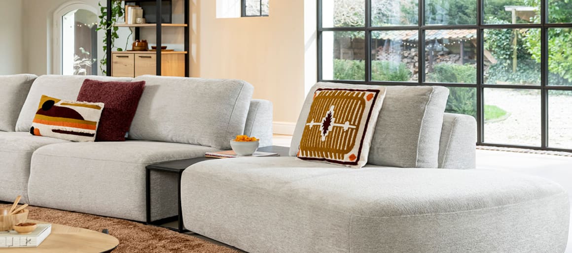 Wat betreft de stoffering van de banken of fauteuils, heb je bij deze collectie relatief veel keuzemogelijkheden omdat de kleur van de meubels vrij natuurlijk oogt. Een simpele of felle kleur maakt dus relatief weinig uit, zolang de stofsoort maar veel karakter heeft. Een lichte vleug zoals bij veloursstoffen of reliëf in de stof zoals bij platweefselstoffen zijn daarom goede ideeën. Tip: Bij Henders & Hazel is het ook mogelijk om verschillende stoffen te combineren! Wat betreft vloerbekleding kan een hoogpolig tapijt in een zachte stof de ruimte extra gezellig maken.